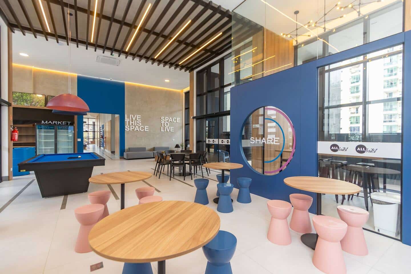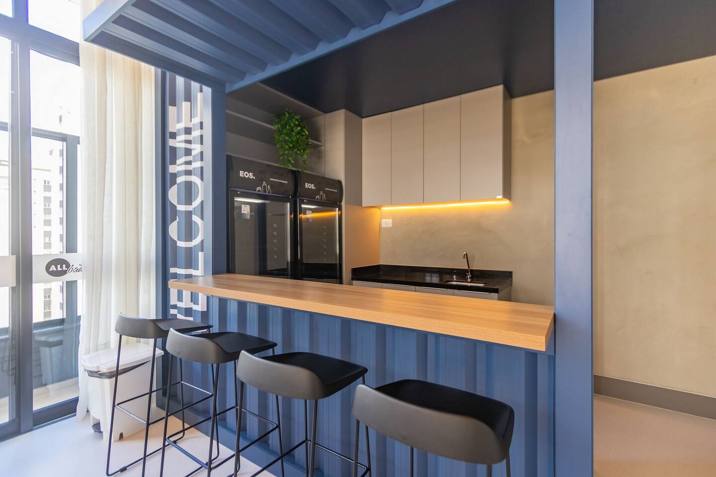O condomínio possui lavanderia compartilhada da OMO, utilizada através de aplicativo. Na lavanderia, tem o informativo de uso na parede.