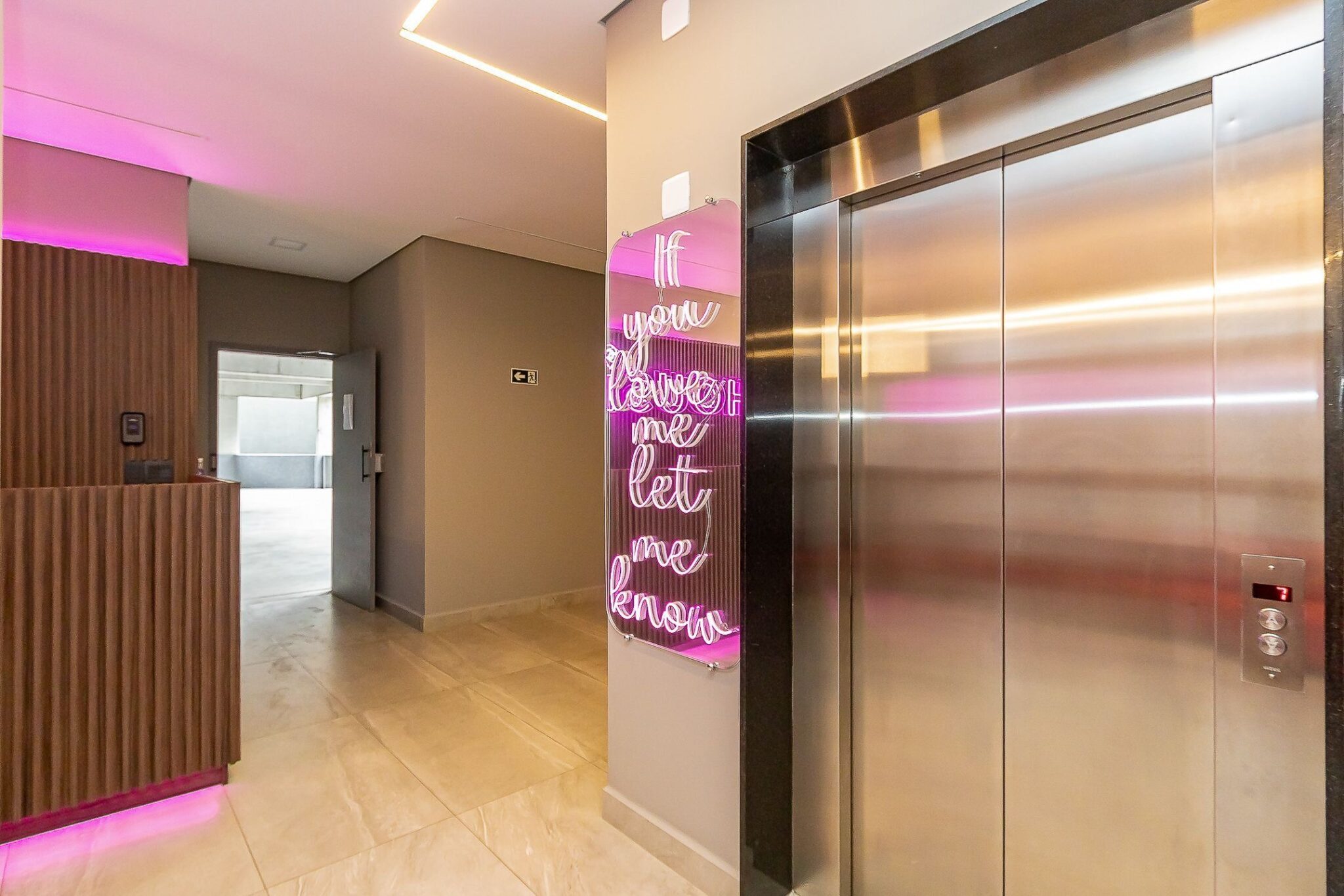Ao descer do elevador você irá localizar as lixeiras devidamente identificadas logo a frente.