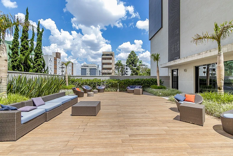 Apartamento muito confortável e muito bem equipado. Roupas de cama excelentes. O sofá cama comporta bem duas crianças. Há estacionamento rotativo no prédio, com acesso aos apartamentos. pode-se pagar diária.